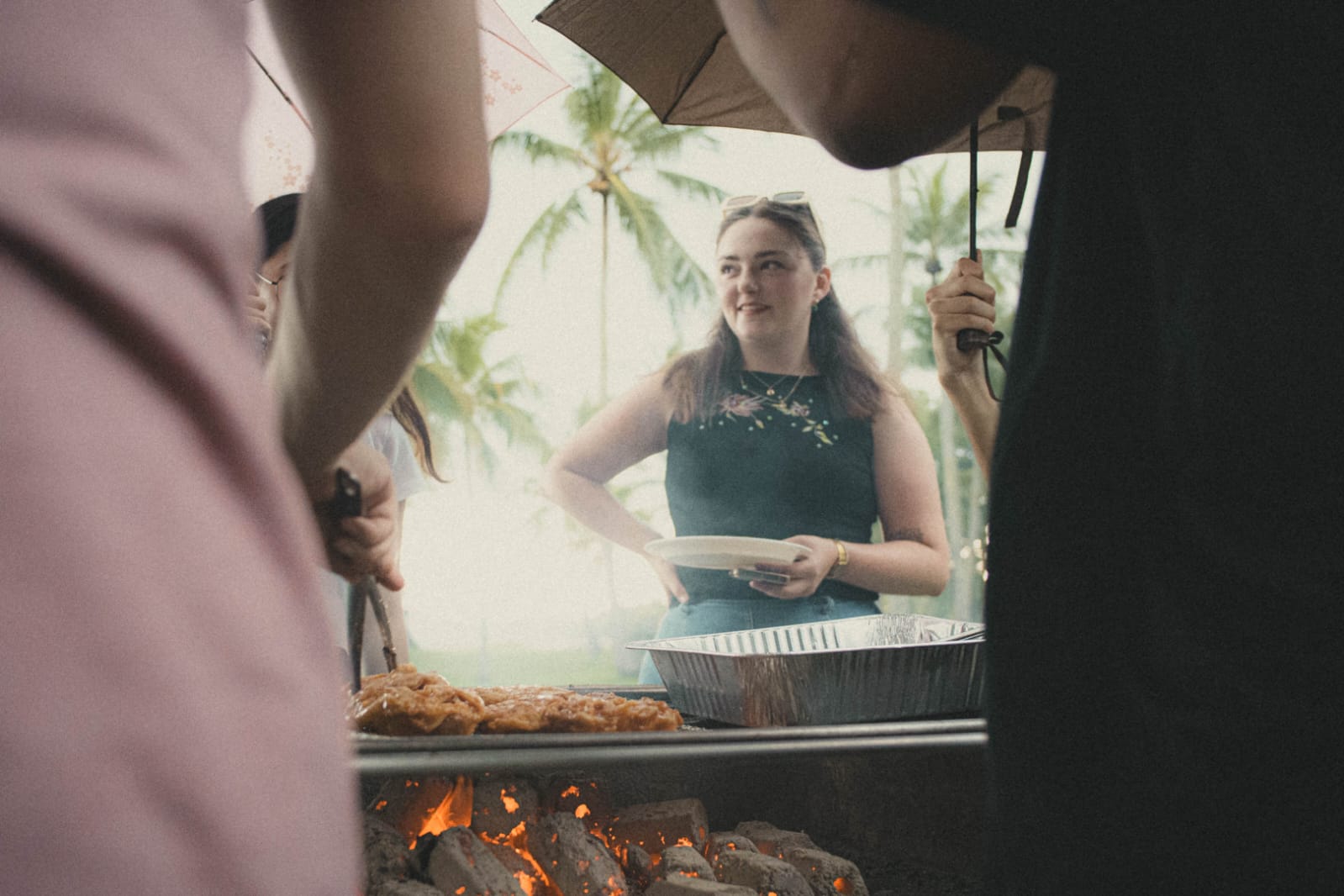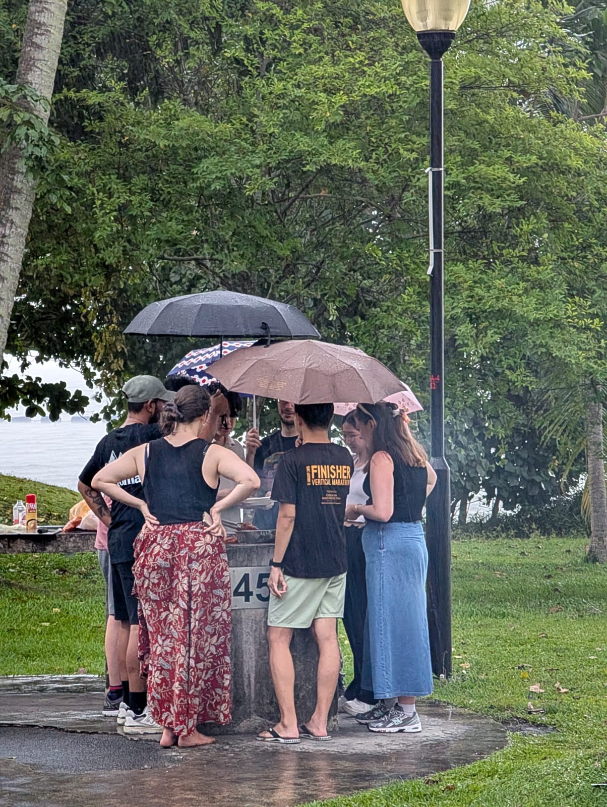 Then, as always, the rain came to join us. Everyone works together to save the food 🙂.