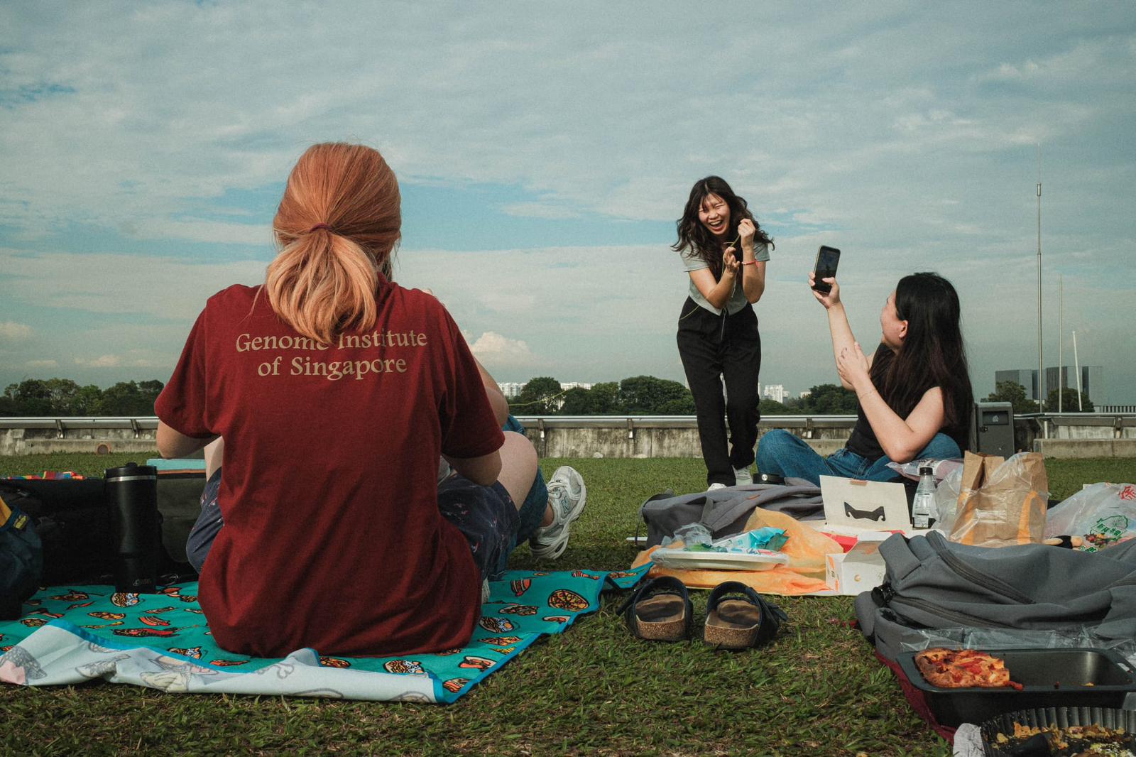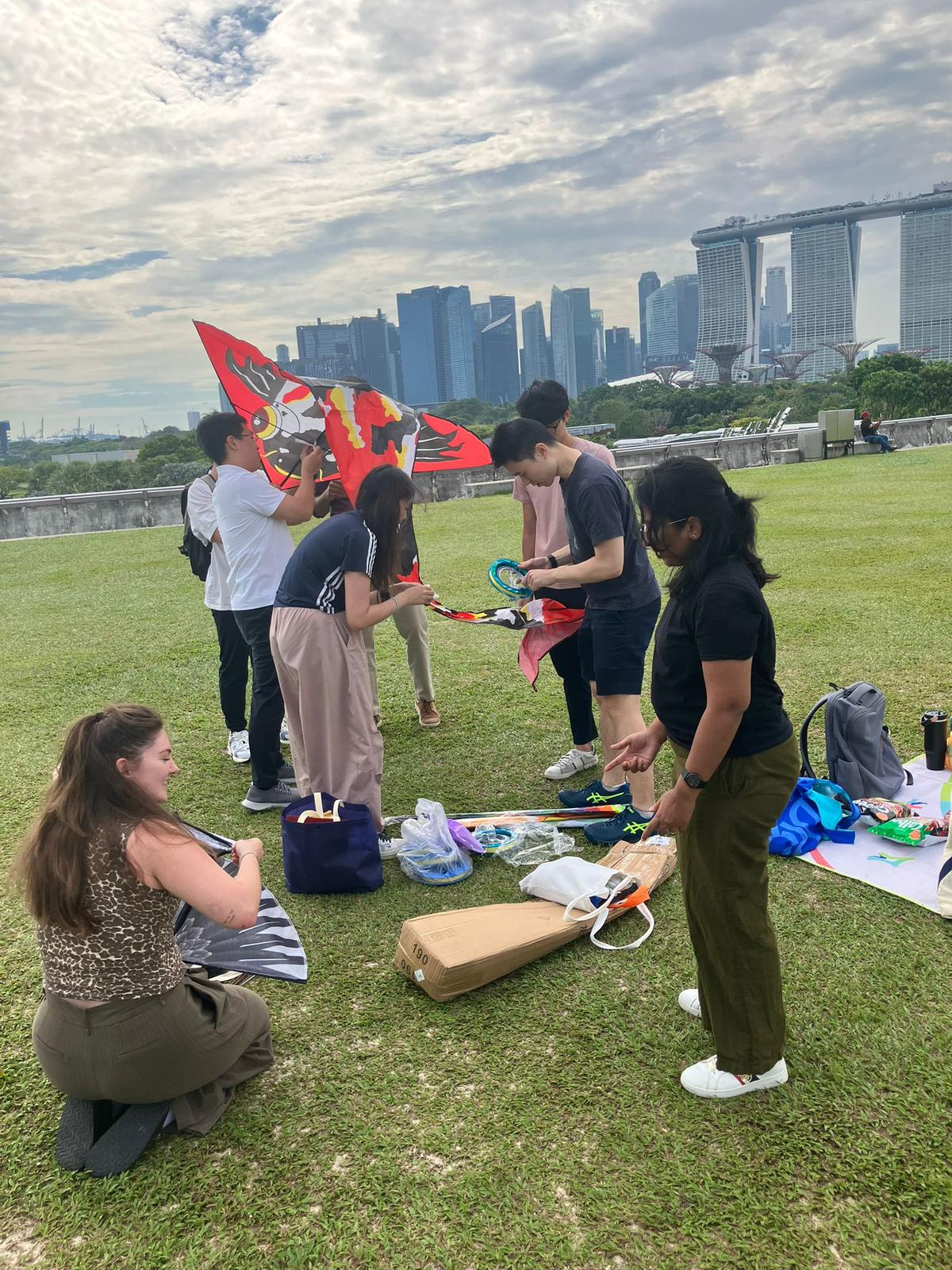 The lab recently spent an afternoon at Marina Barrage enjoying some time outdoors and flying kites together. Jon managed to get his kite so high it looked like he was trying to reach the moon. We also had plenty of food to go around: Jean Sebastian (with help from sous chefs Seeu Si and Amy) made a feta and bell pepper cake and a fig and frangipane tart with pistachios and powdered sugar. Alongside that, we shared a mix of traditional sweets from different countries. It was a simple, relaxed break from the lab and a nice chance to be out in nature whilst overlooking the Singapore cityscape.