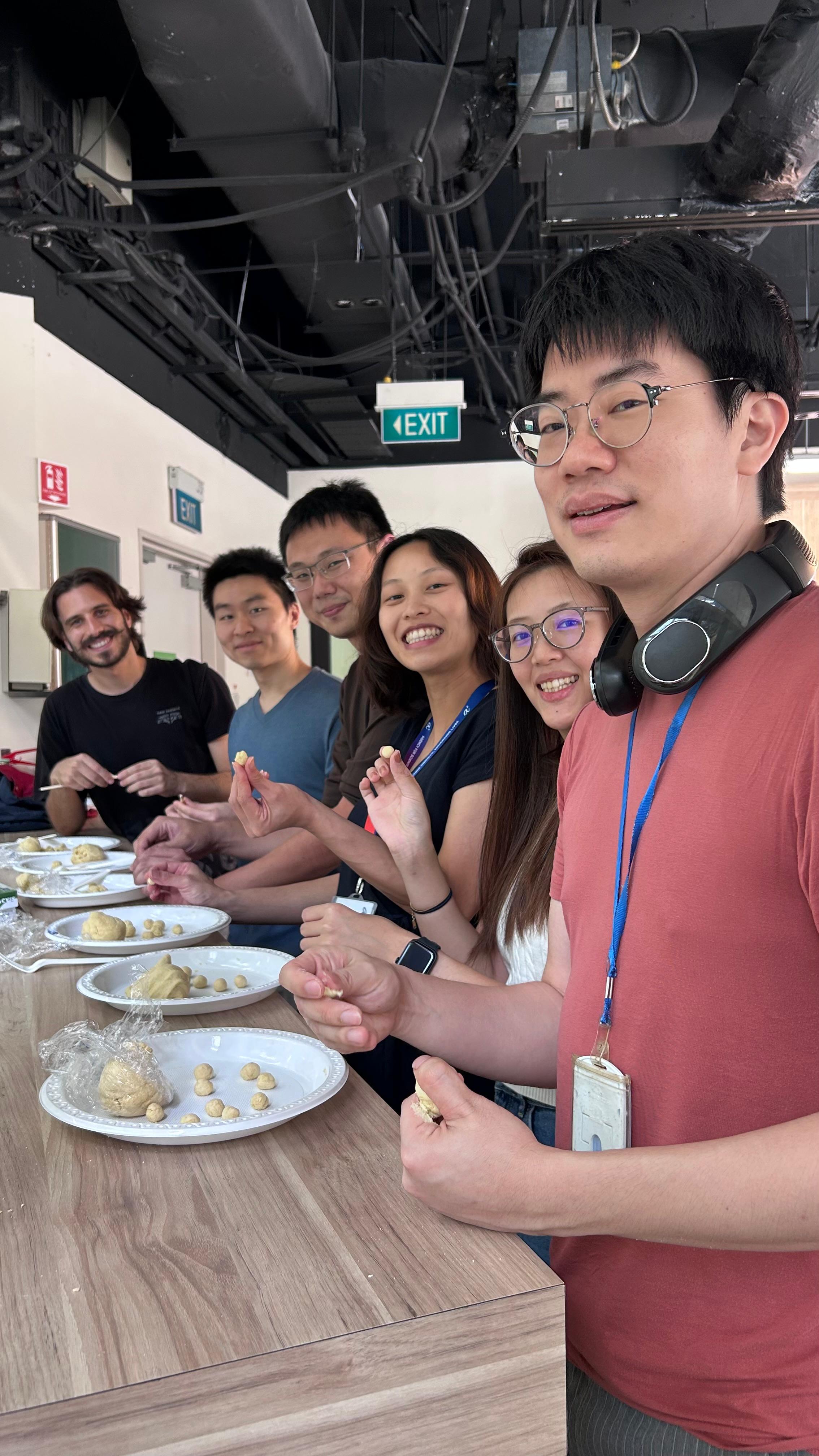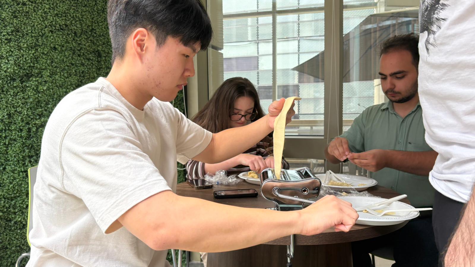 Jon, our resident chef, teaches lab members how to make beautiful pasta!